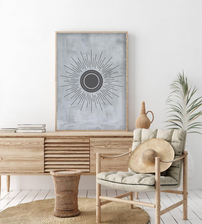 Boho Wall Art, Mid Century Modern Art Print, Minimalist Wall Art, Grey Sun Print, Boho Grey Sun Poster