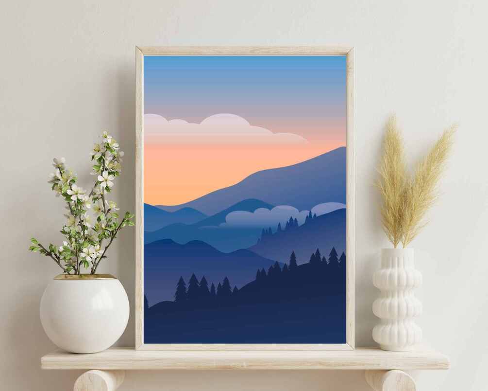 Gradient Blue Mountain Landscape Watercolor Wall Art, Abstract Mountain Print Set, 3 Piece Wall Art, Landscape Print Set, Modern Home Decor, Printable Triptych, Digital Wall Art Decor