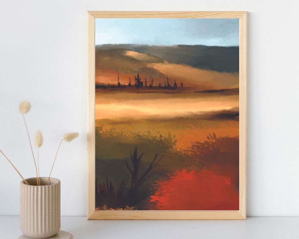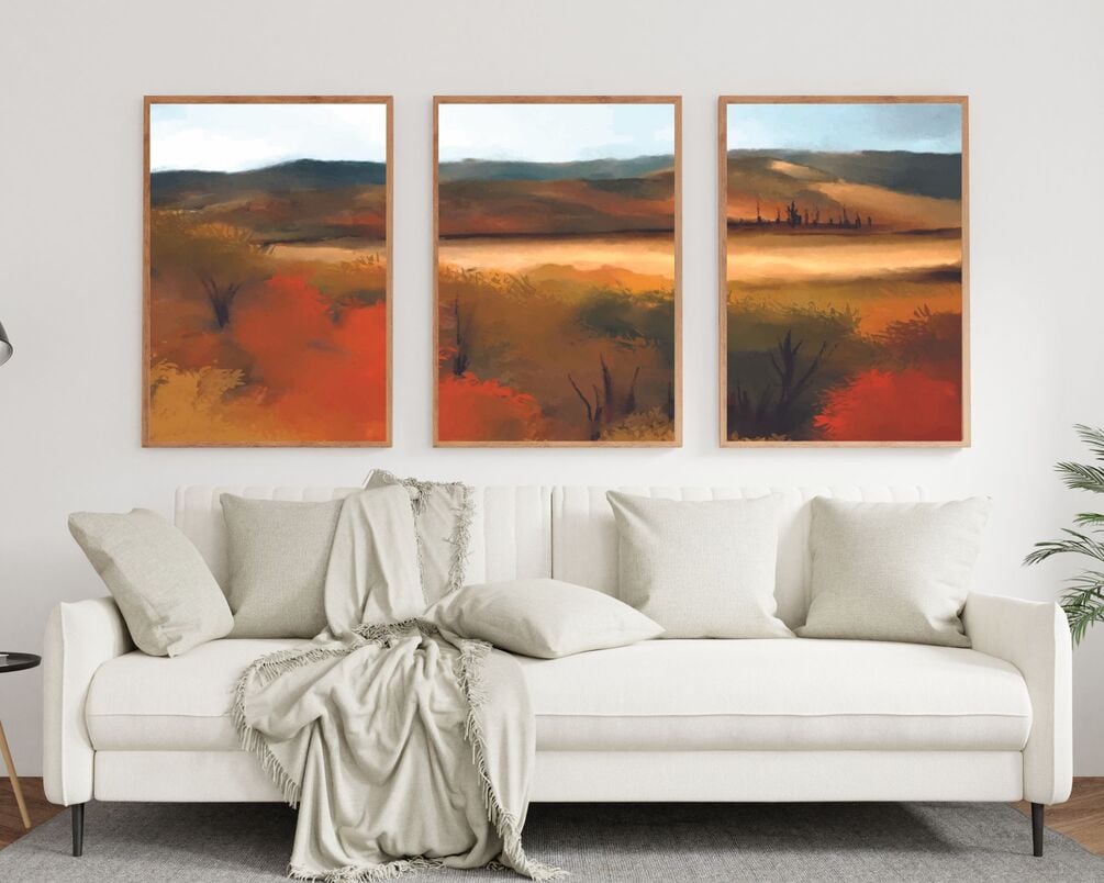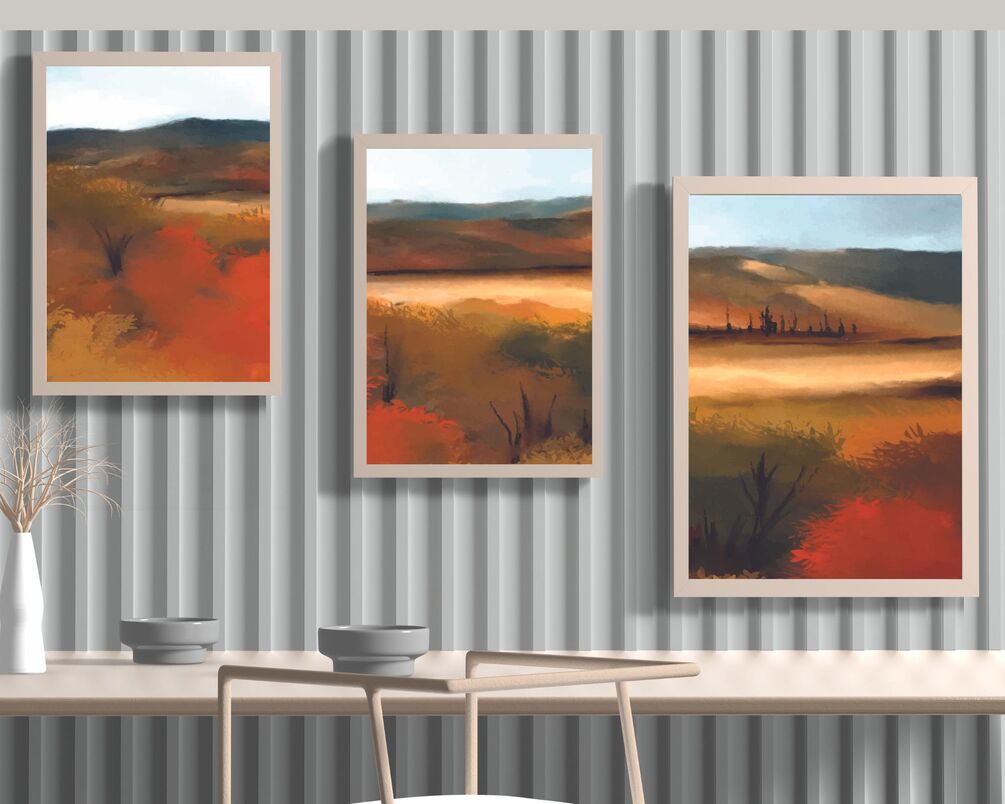 Watercolor Autumn Landscape Wall Art, Abstract Mountain Print Set, 3 Piece Wall Art, Landscape Print Set, Modern Home Decor, Printable Triptych, Digital Wall Art Decor