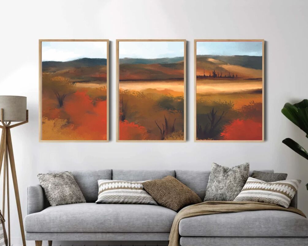 Watercolor Autumn Landscape Wall Art, Abstract Mountain Print Set, 3 Piece Wall Art, Landscape Print Set, Modern Home Decor, Printable Triptych, Digital Wall Art Decor
