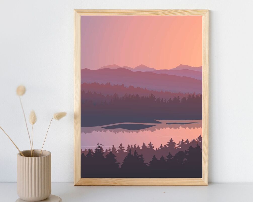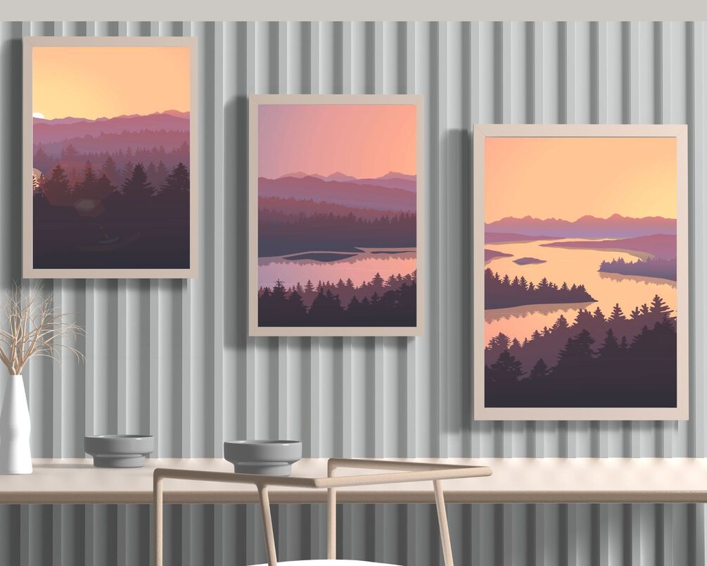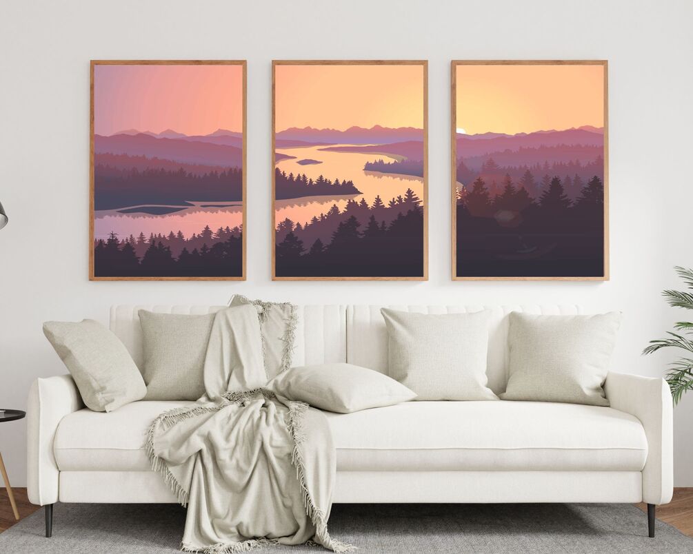 Travel Landscape with Large River Wall Art, Abstract Mountain Print Set, 3 Piece Wall Art, Landscape Print Set, Modern Home Decor, Printable Triptych, Digital Wall Art Decor