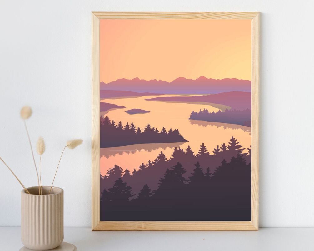 Travel Landscape with Large River Wall Art, Abstract Mountain Print Set, 3 Piece Wall Art, Landscape Print Set, Modern Home Decor, Printable Triptych, Digital Wall Art Decor