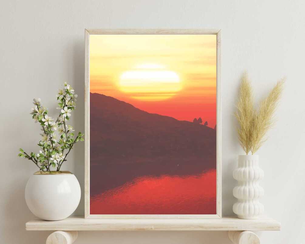 Sun Set Gradient Mountain Landscape Watercolor Wall Art, Abstract Mountain Print Set, 3 Piece Wall Art, Landscape Print Set, Modern Home Decor, Printable Triptych, Digital Wall Art Decor