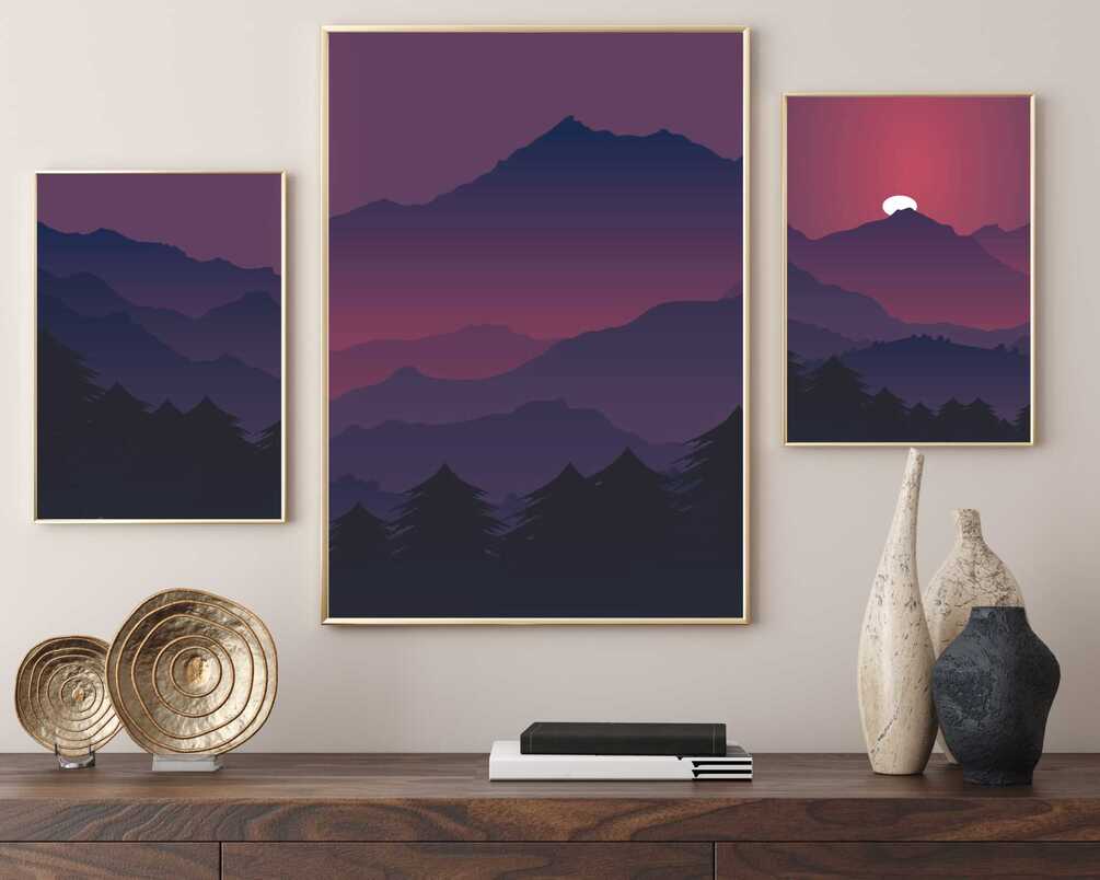 Gradient Mountain Landscape Watercolor Wall Art, Abstract Mountain Print Set, 3 Piece Wall Art, Landscape Print Set, Modern Home Decor, Printable Triptych, Digital Wall Art Decor